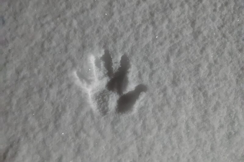 雪の上に残された 子どもの手形や