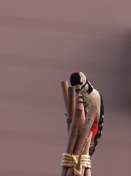 アカゲラさん 飛ばないで まだお隣の庭にいてくれました