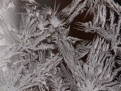 ガラスを外に出しておいたら シダの葉状の窓霜ができるかしら