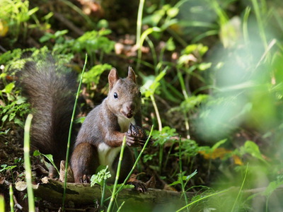 まだ夏毛のエゾリスは、ちょっぴり貧相に見えてしまいます。