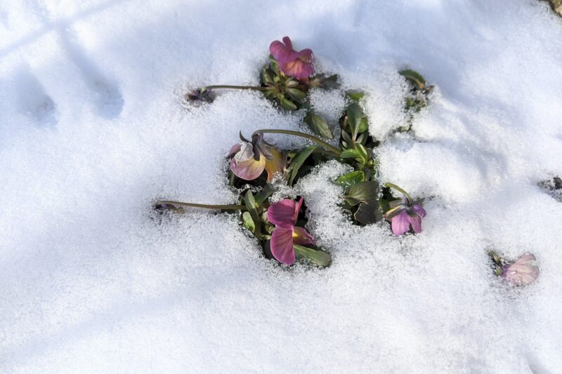 2日続けて降った雨で 雪の中に埋もれていた草花が顔を出し始めました
