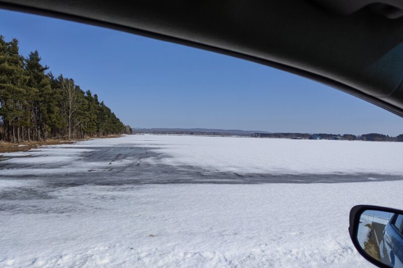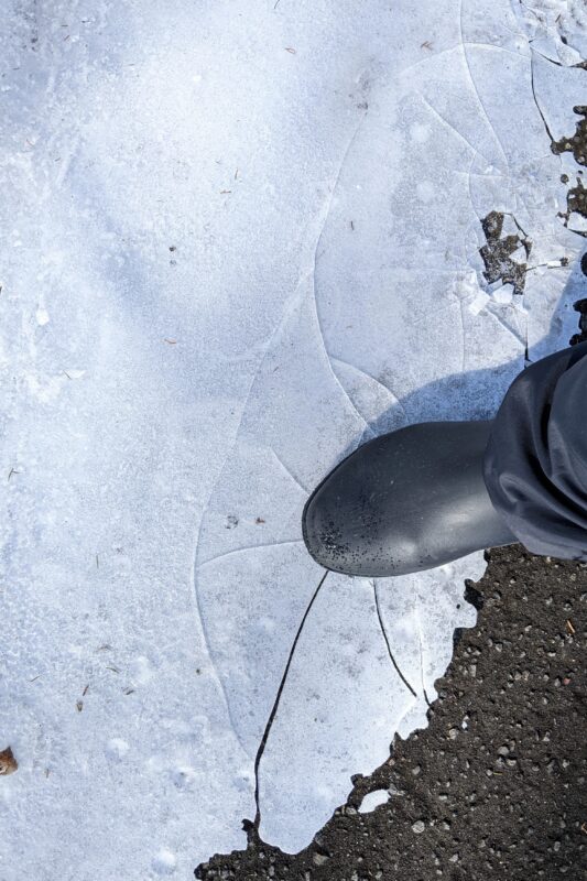薄焼きせんべいのような氷を足で割りながら のんびりと遊歩道を歩く
