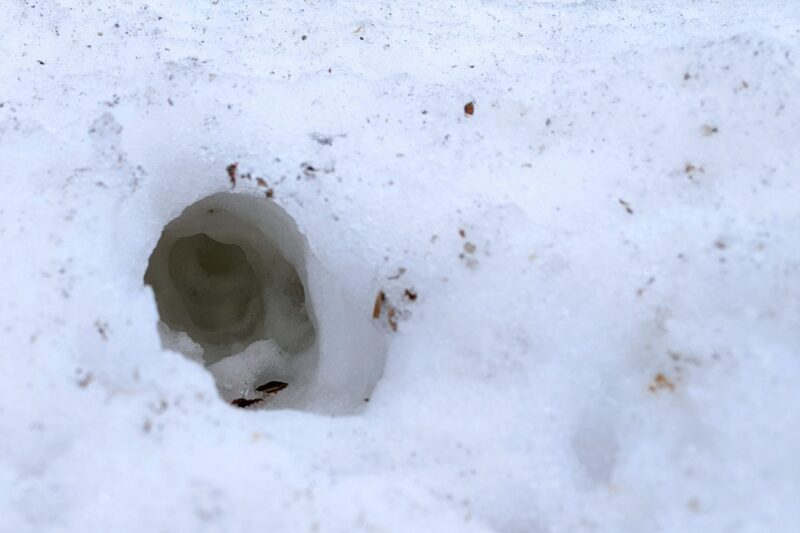 ネズミさんも食べ物を探して雪の下にトンネルを掘り進めるとは!ビックリしちゃう