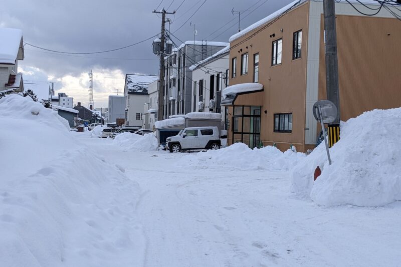 交差点にできた雪山で見通しが悪く バックをして道を譲ることもしばしばです