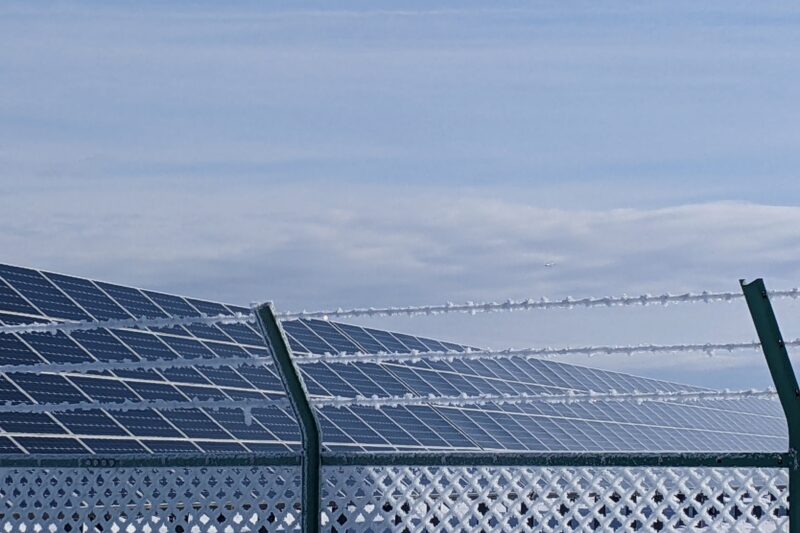 フェンスの網も 有刺鉄線も 霜が降りて真っ白です